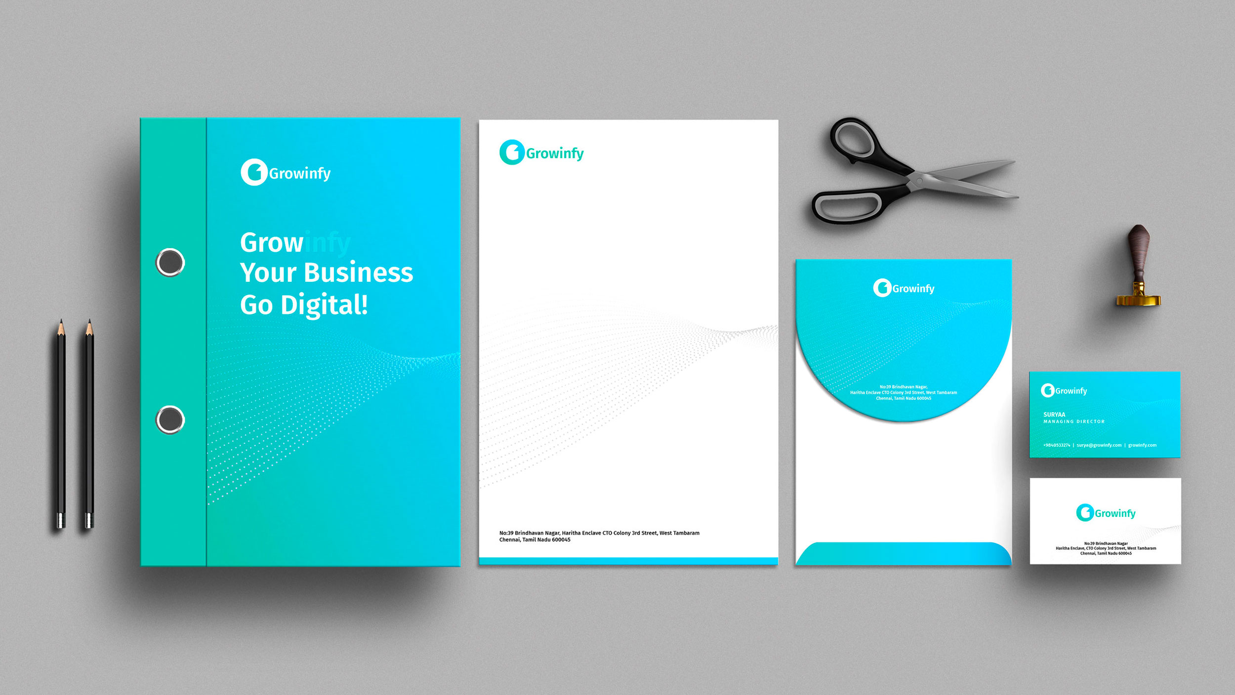 GROWINFY is a leading tech and automation company specializing in innovative solutions that drive business growth and operational efficiency. Despite having a strong product offering, GROWINFY faced challenges in establishing a cohesive and distinctive brand identity, which affected their visibility and market penetration.