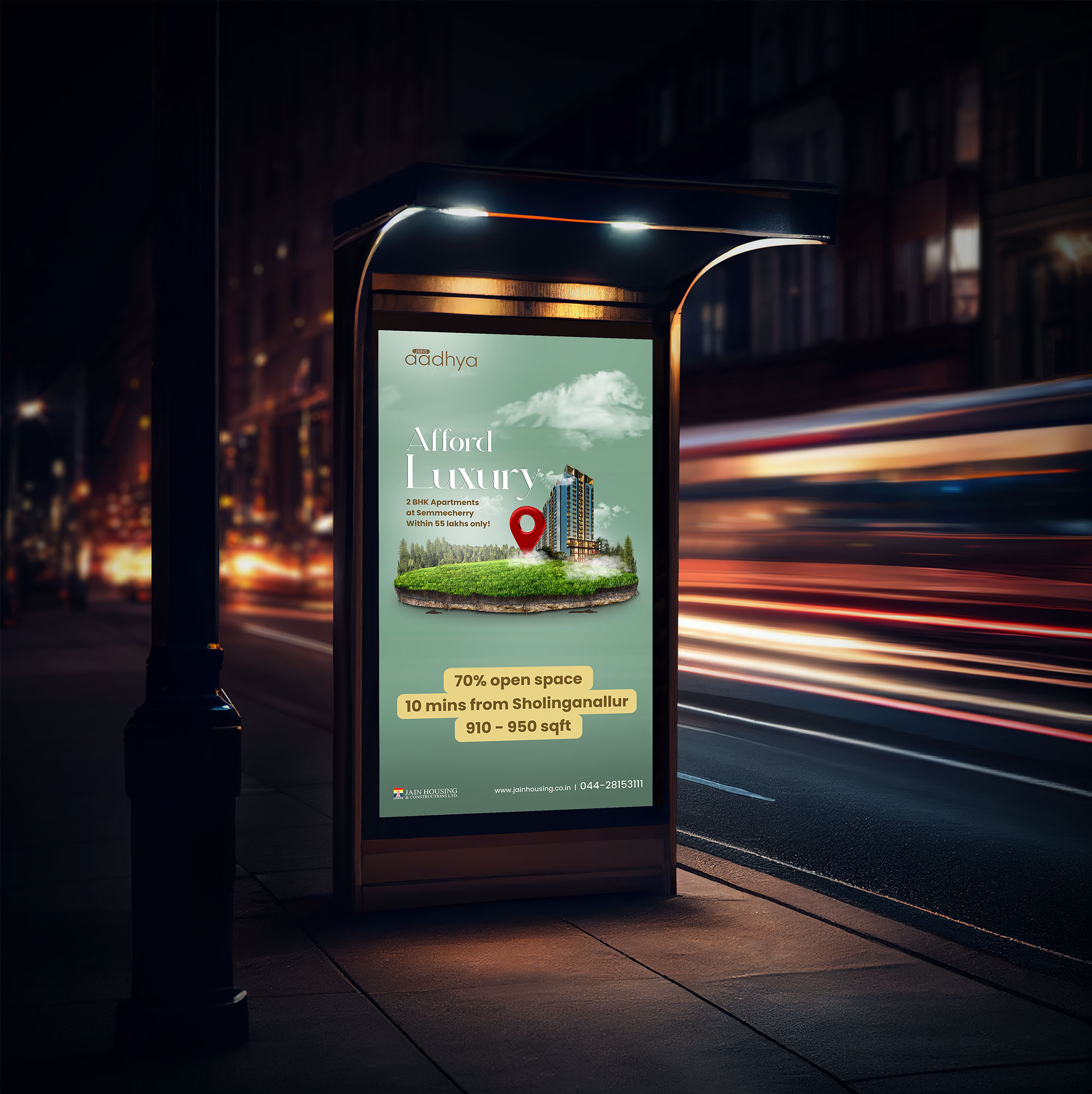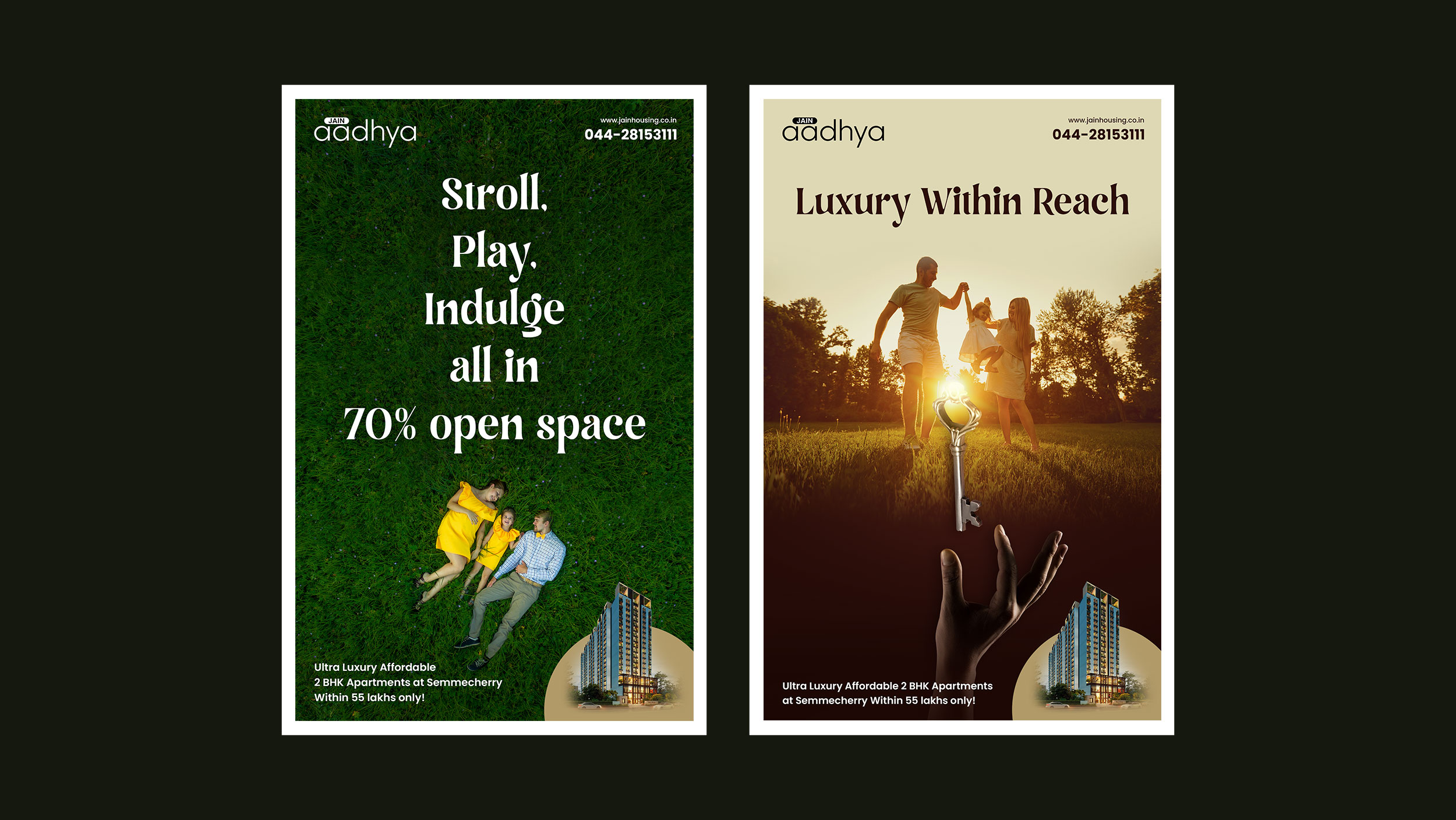 The Challenge: Despite their esteemed reputation, Jain Housing was facing significant challenges in generating leads for their flagship project, Aadhya, both online and offline. Previous ad campaigns, though abundant, lacked the conceptual creativity necessary to capture the attention of potential customers in a saturated market.