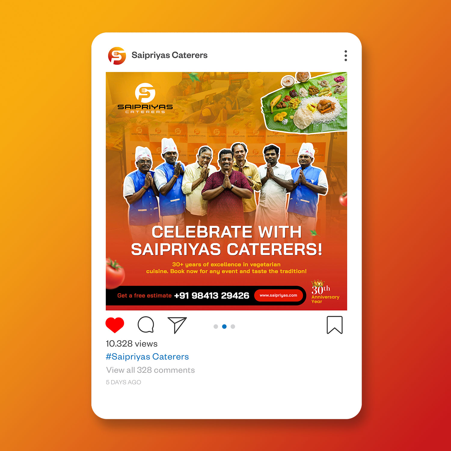 Dsignxt undertook a complete overhaul of Saipriyas Catering’s branding and digital presence. We developed a new logo, designed uniforms, and created promotional materials such as standees, stall designs, flyers, and newspaper ads. Our team also designed and developed a modern website and implemented a full suite of digital marketing strategies, including social media marketing, Google Ads, YouTube Ads, and an impactful ad film. Additionally, we produced a testimonial video to further enhance credibility. Within just 120 days, our integrated approach resulted in a remarkable 300% increase in revenue, establishing Saipriyas Catering as a well-recognized and competitive player in the catering industry.